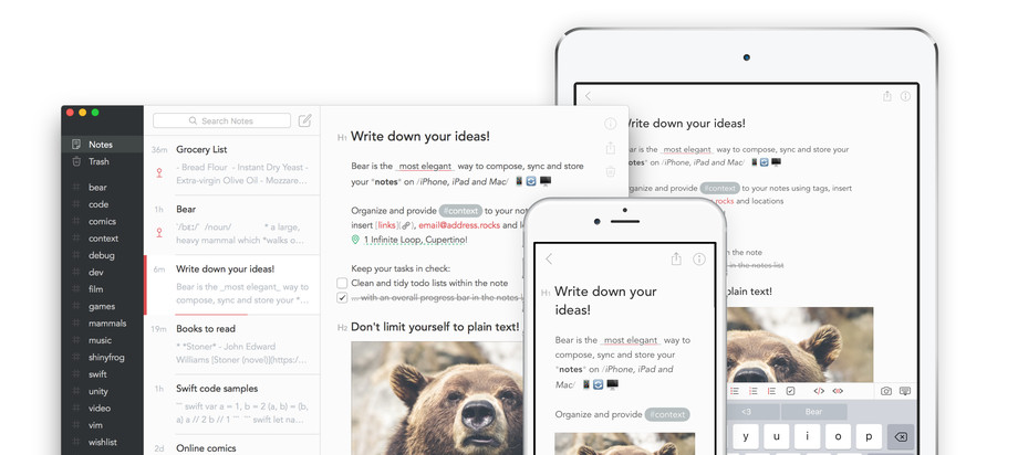 I live my life through Bear Notes, and many other Mac-using writers will likely tell you the same. Bear Notes is a clean and powerful note-taking app that became my Evernote replacement when it first launched a couple years ago. It’s not as outfitted as some other apps, but it’s got excellent design and contains features I can’t live without, like the ability to pin notes, organize via hashtags, and use Markdown syntax.