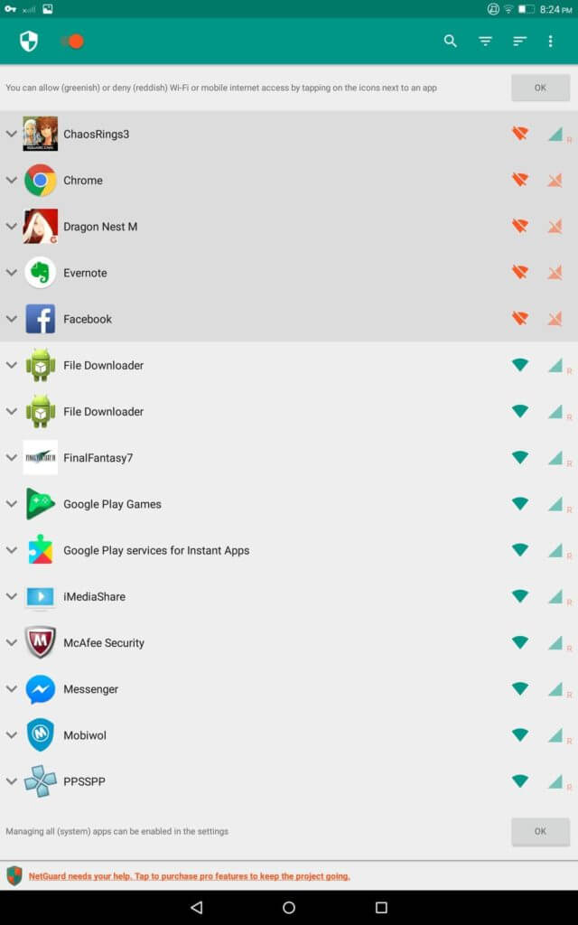 NetGuard denies and allows specific applications and websites from accessing your data and/or WiFi connection.