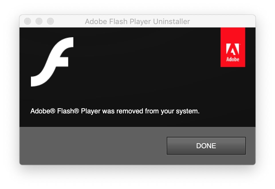 - After the process is complete, a window will popup to confirm that Adobe Flash Player has been removed from your computer.