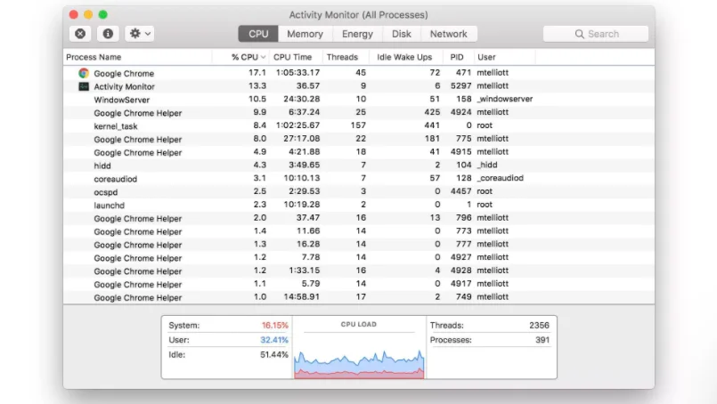 - In the CPU tab, there is a list of all active tasks and apps. Locate the most resource-heavy one which usually will be at the top.