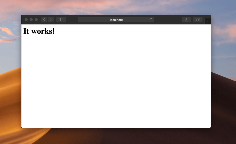 You now have installed Homebrew's Apache, and configured it to auto-start with a privileged account. It should already be running, so you can try to reach your server in a browser by pointing it at http://localhost:8080, you should see a simple header that says "It works!".