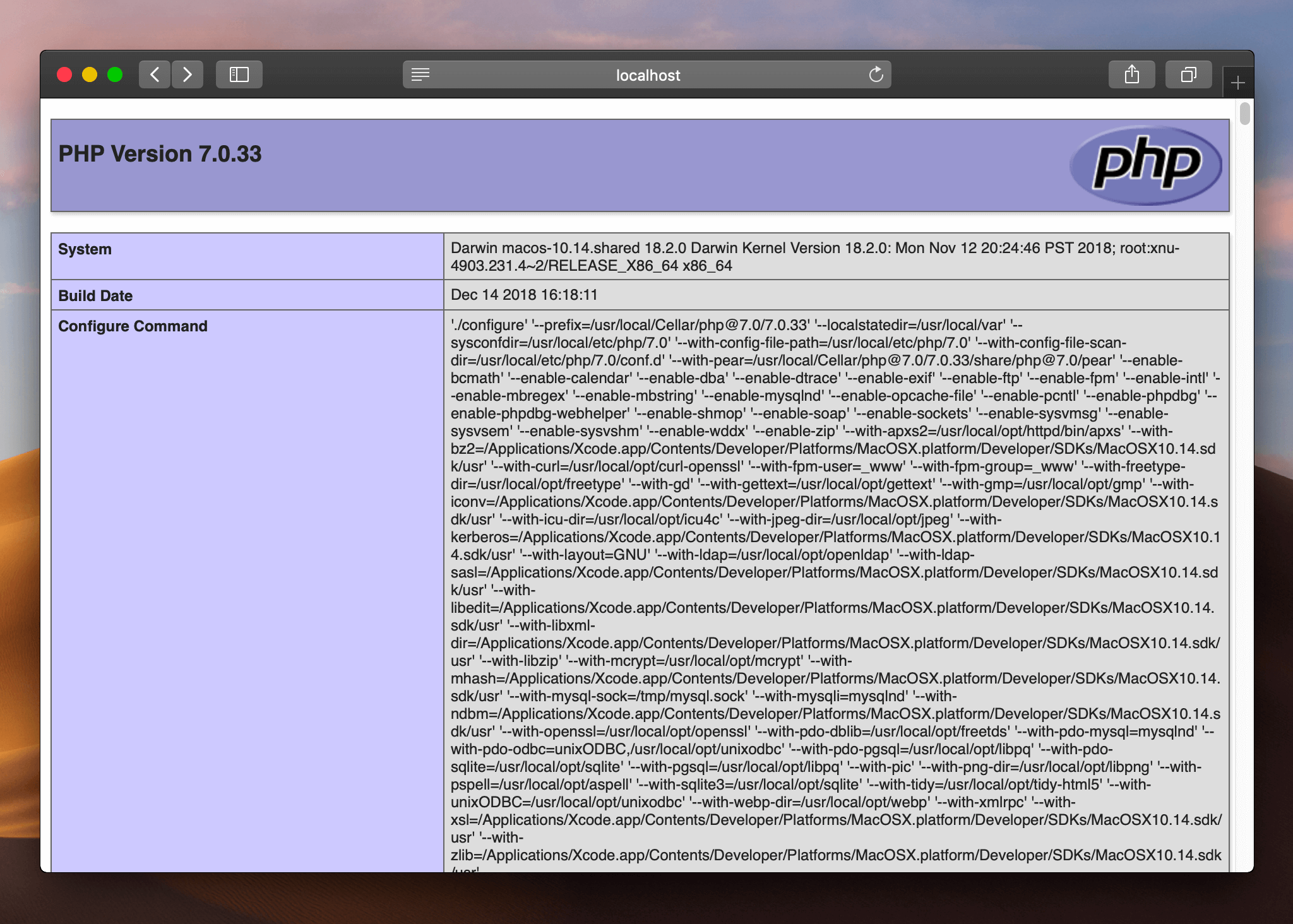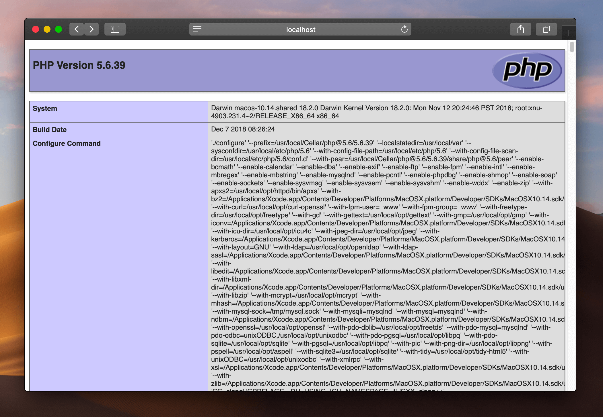 In Part 1 of this 2-part series, we covered configuring Apache on macOS Sierra 10.14 High to work better with your local user account, as well as the installation process for installing multiple versions of PHP. In Part 2, we covered installing MySQL, Virtual Hosts, APC caching, YAML, and Xdebug.