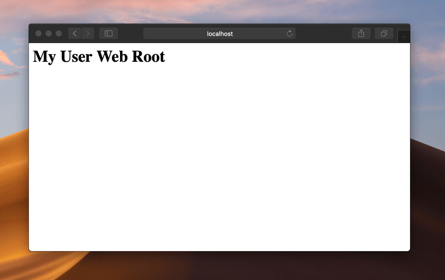 $ mkdir ~/Sites $ echo "<h1>My User Web Root</h1>" > ~/Sites/index.html
