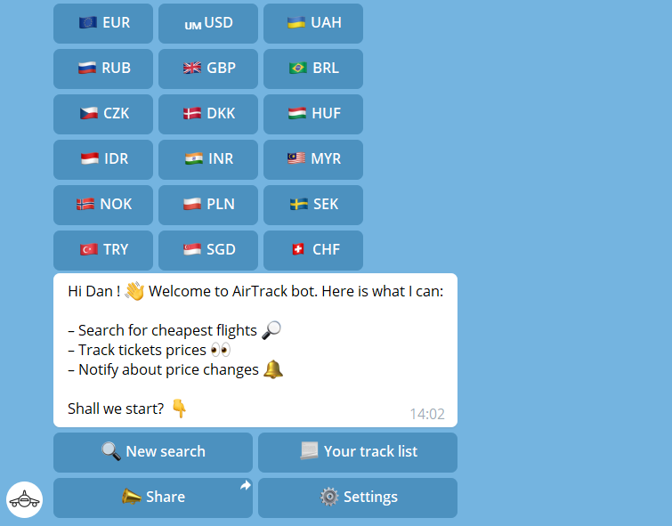 HotelBot is another of the best Telegram bots. It is the perfect complement to AirTrack. It works in the same way, just let the bot know the name of the hotel and the city, and it will monitor the cost over time so you can make sure you book when the price is cheap.