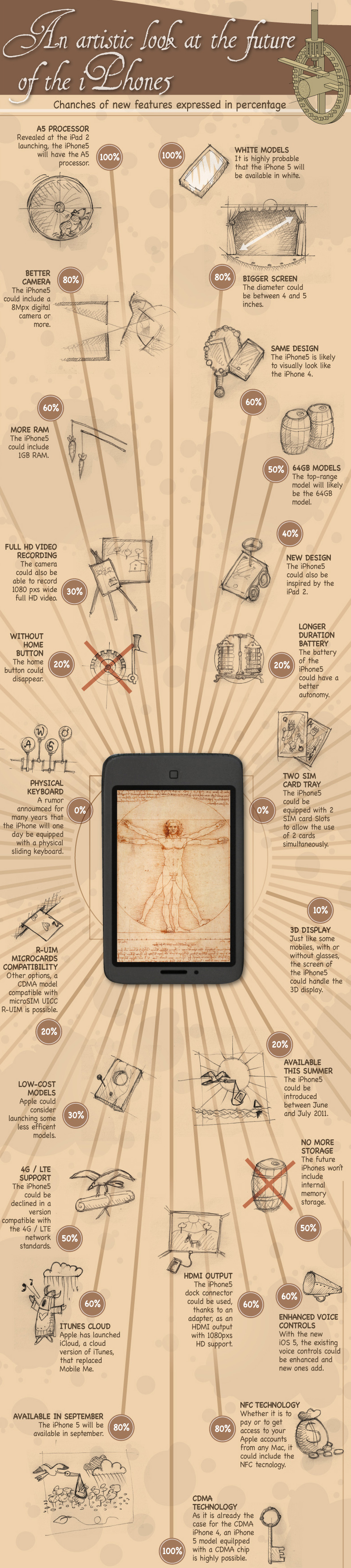 There are many ideas as to what this new model could turn out to be, and some of them have been put together in an attempt to predict the future of the iPhone5 in a style that Leonardo da Vinci himself might have dreamt up.
