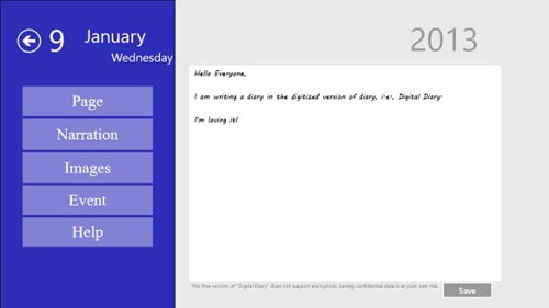 Digital Diary is a digitized version of the old-styled text diary. You can use it to write daily diary, save photos, memorize events, etc.
