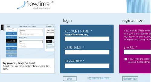 flow.timer is a social time tracking app, i.e., a task tracking system suitable for the use by a single person or multiple persons, e.g., a team or a company working together on a project. It eases the collaboration with other people on a project.