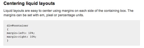 This post includes instructions for centering liquid layouts with CSS. It’s very simple and straight-forward and works in virtually all browsers. Basically, it just uses left and right margins combined with some additional code to make it cross-browser compatible.